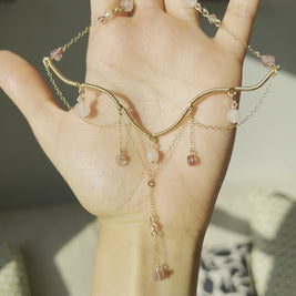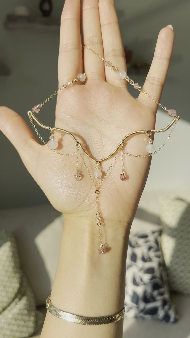 Made with Rose Quartz, Strawberry Quartz, Gold-filled wire and Gold-filled chain (12K/20).